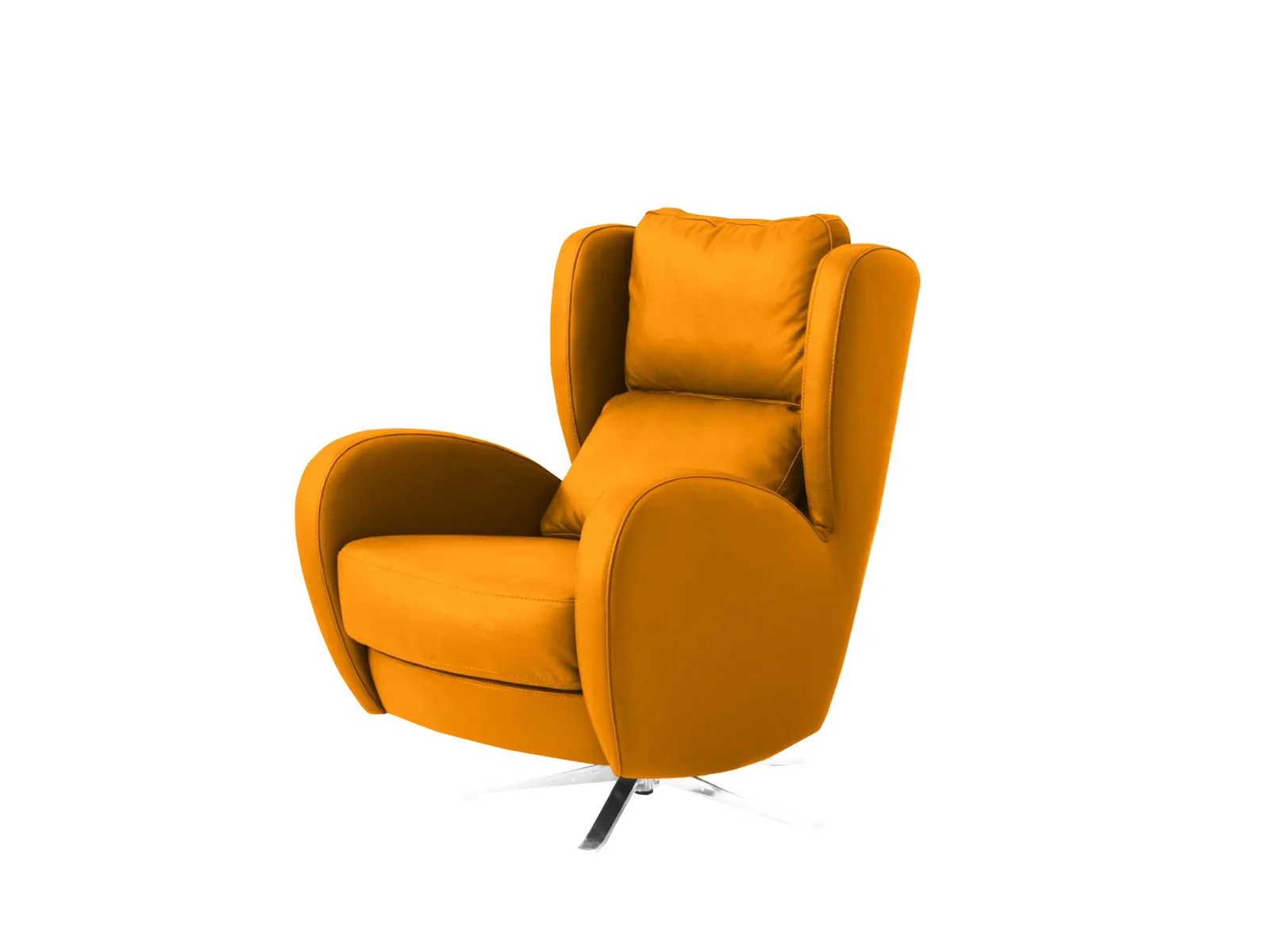 The Fama Romeo Chair is a spacious, comfortable armchair featuring a swivel base and smooth rocking motion. It offers excellent lumbar support for added comfort and comes in a choice of leather or fabric materials. The base is available in a variety of metal finishes to suit your style.
